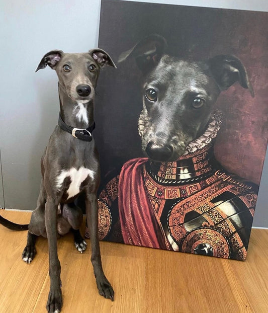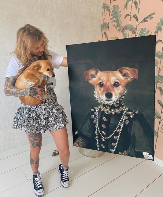 Een portret van jouw huisdier in kostuum. Op basis van de foto van jouw hond, kat of konijn gaan we aan de slag!